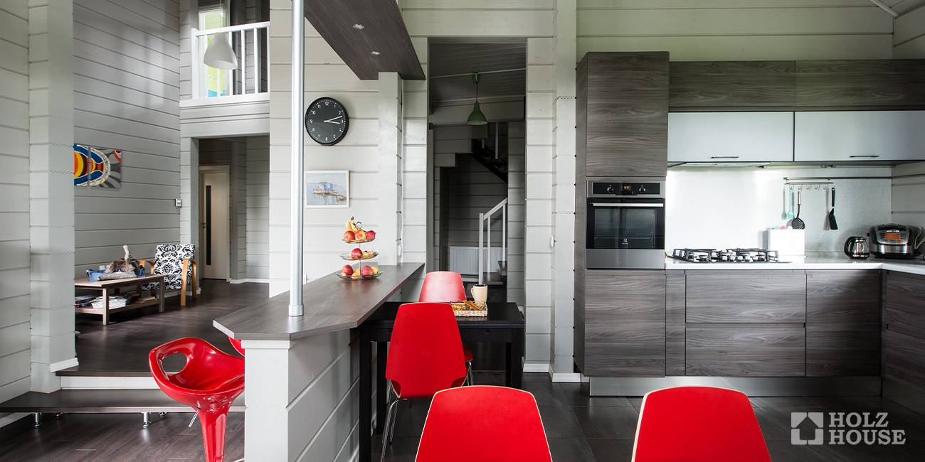 - Если семья небольшая, то установить в обеденной зоне барную стойку или стол-трансформер.