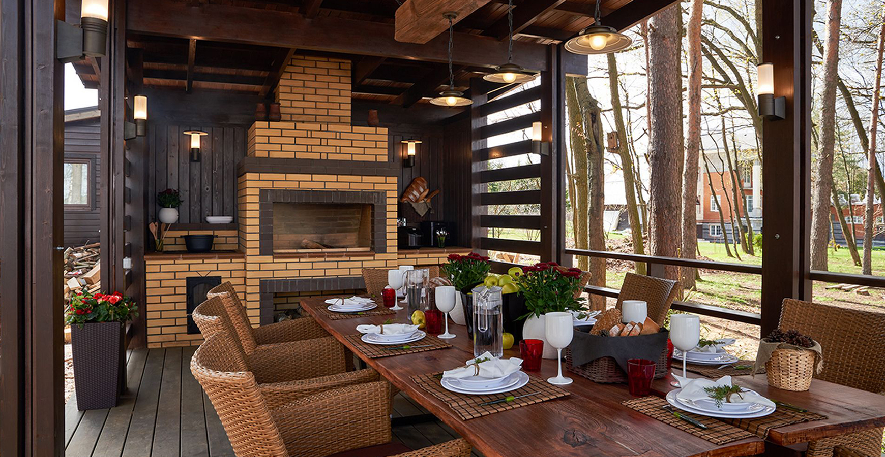 Неоклассика — это смесь классики и современности. В такой кухне могут быть использованы стекло, металл и пластик, но главным материалом все же остается камень и кирпич. Цветовая гамма может быть яркой и насыщенной или приглушенной и спокойной.