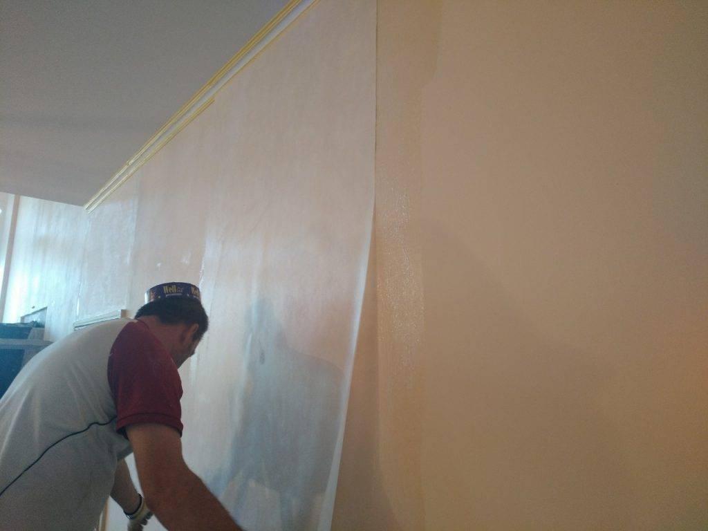 - Используя широкую кисть, основание смачивают водой. Цель работы — качественное удаление даже малейших остатков отделочного материала.