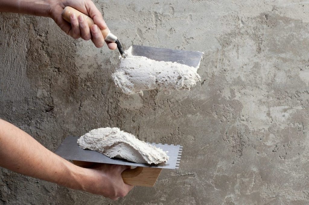 Шпаклевка представляет собой пастообразную смесь, после нанесения на стенку которой, образуется гладкая и ровная поверхность. Стоит сразу отметить, что ее наносят не на голый бетон. Предварительно стены штукатурят.