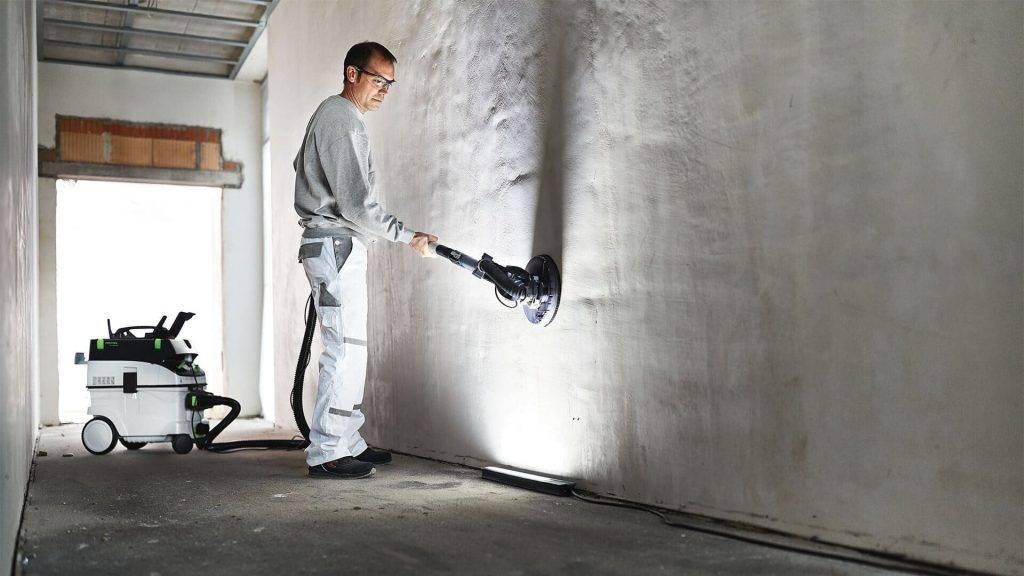 - Вся плоскость стен тщательно шлифуется с контролем поверхности при помощи прожектора.