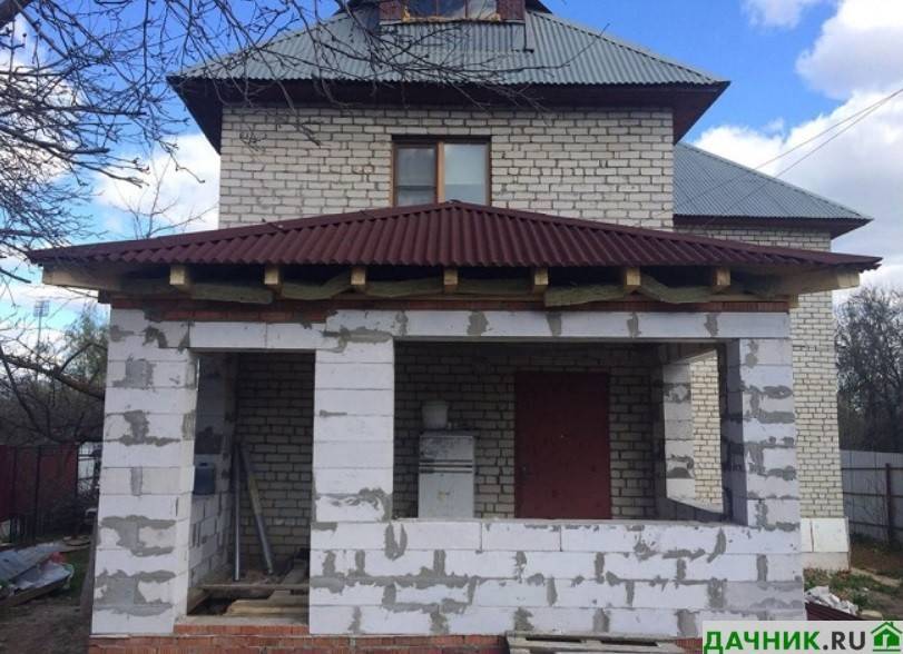Аналогичным способом возводится легкий металлический каркас. Если позволяет фундамент, каркас можно сделать из бетона или кирпича. Толщина несущих элементов конструкции может отличаться от характеристик стен основного дома. Опоры для крыши должны иметь толщину не менее 1,5 кирпича, стойки ограды — 125 мм.