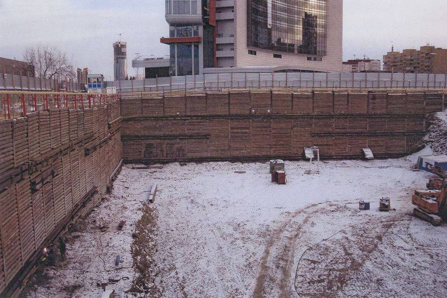 Шпунтовое ограждение из стальных свай, деревянной забирки и опорного пояса является самым распространенным способом в нашем регионе. Крепление стенок котлована шпунтом применяется в условиях плотной застройки и относительно прочных грунтах.