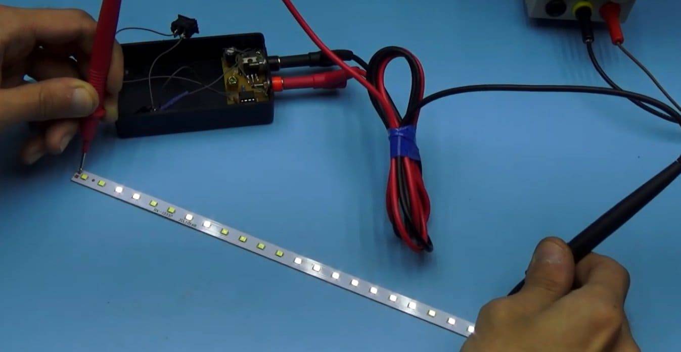 - 12 вольт. Используется для проверки светодиодных лент. Большое напряжение позволяет проверять сразу небольшие участки ленты.