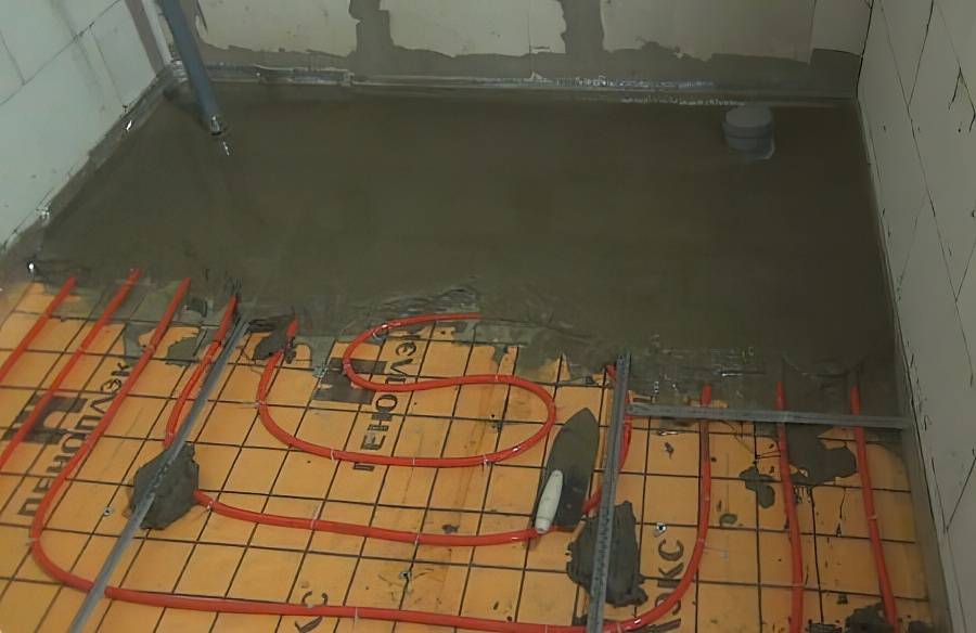 Стяжка, где водяной контур оказывается полностью в бетоне, будет прочнее. Но себестоимость конструкции теплого пола возрастает. Общая толщина бетонной прослойки окажется на 20-30 мм больше.