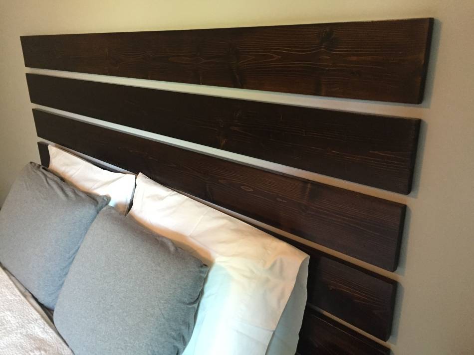 Все шероховатости аккуратно зашлифовать с помощью наждачной бумаги. При желании заготовку изделия можно покрыть лаком. После полного высыхания поверхности данную конструкцию прикрепляют к каркасу кровати посредством саморезов или болтов либо вешают на петли на прикроватной стене.