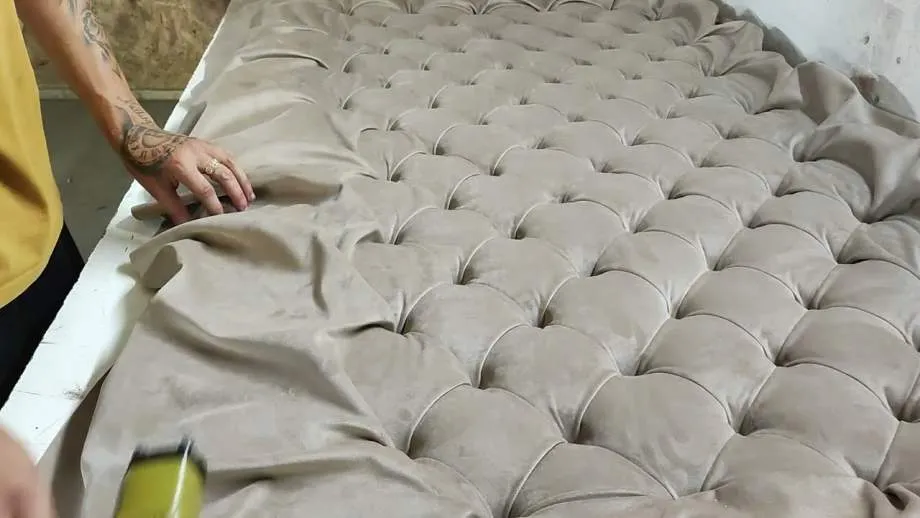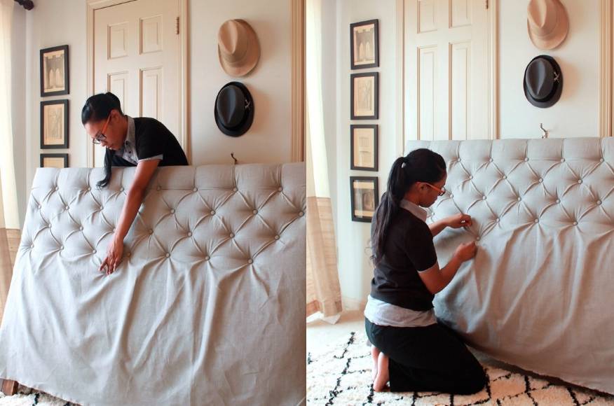 Перетяжку изголовья кровати своими руками выполняют в следующем порядке: