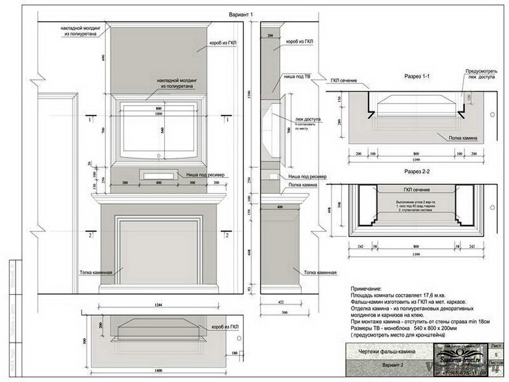 Перед тем как возводить камин, определитесь с местом постройки. Конструкция должна располагаться возле стены и не мешать свободному проходу. За камин не должны цепляться, задевать его руками и ногами. Неправильно выбранное место для камина может испортить впечатление о пространстве и самой конструкции. Когда определитесь с местом нахождения фальш-камина, потребуются эскизы.