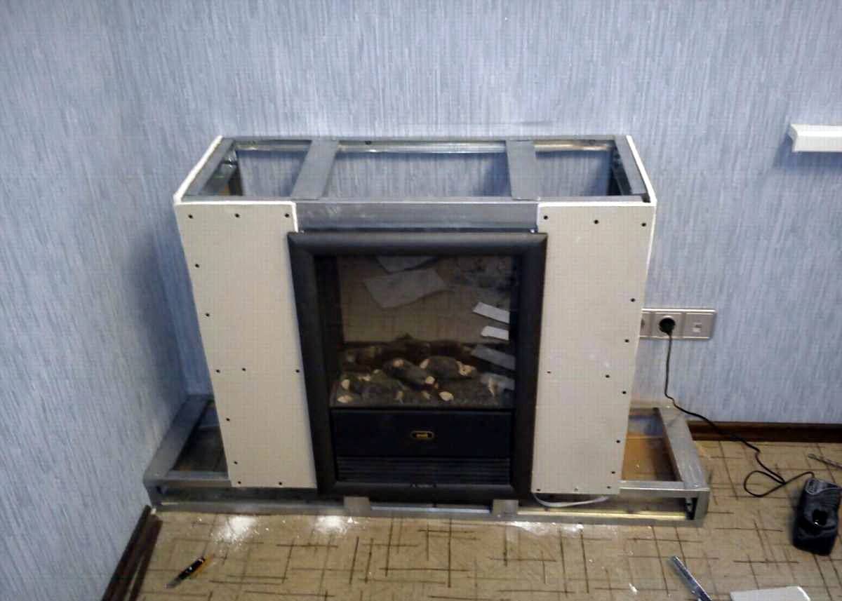 - Гипсокартон для обшивки каркаса и создания формы фальш-камина.