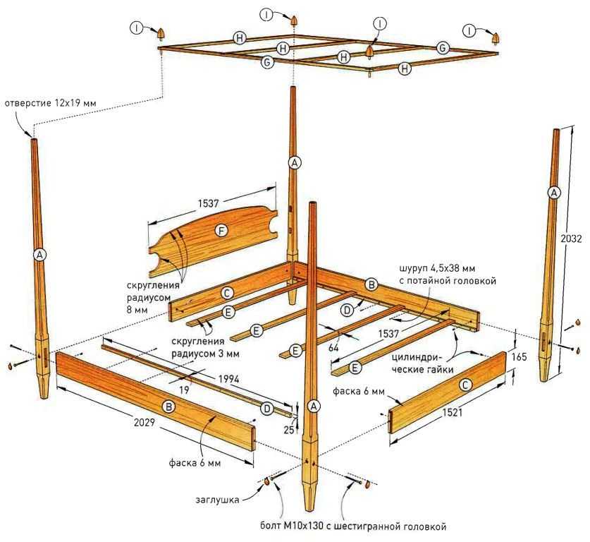Именно поэтому для кровати нужно выбирать максимально качественную и прочную древесину. Хвойные породы лучше сразу исключить из списка материалов, так как они не обладают достаточной прочностью.