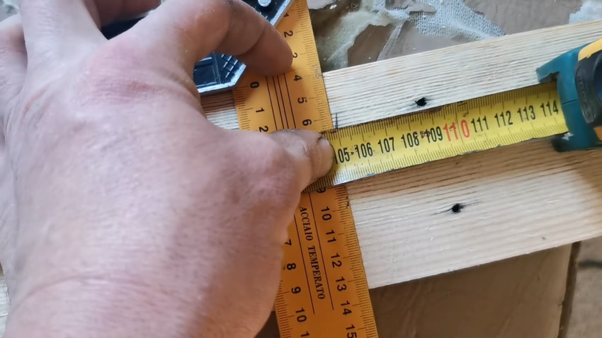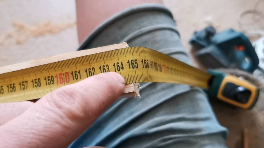 | 3 | ![]() | Замерьте ширину кровати. Далее при изготовлении рейки для изголовья ориентируйтесь на это значение. Ее также обработайте электрорубанком со всех сторон и укоротите до нужного размера. |