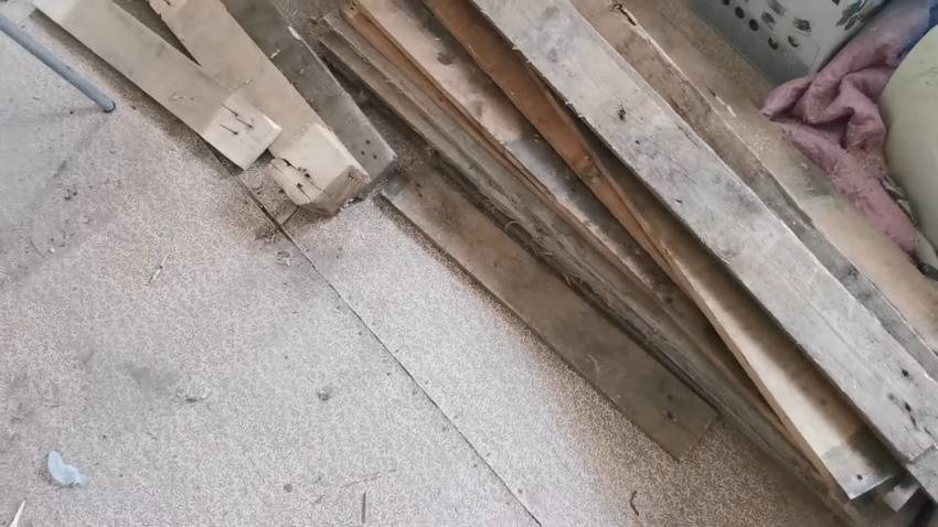| 1 | ![]() | Для начала разделите подготовленный поддон на несколько досок и очистите их от гвоздей (при наличии). |