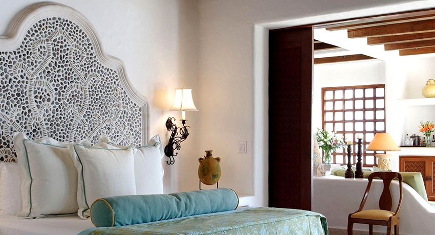 Интерьер будет сочетать в себе ширмы, вееры, а также кровати-подиумы. Допускается небольшое число предметов мебели, изготовленной из натурального сырья темного цвета. Изголовье должно обладать правильной формой. Можно использовать твердый декор или мягкие тканевые накладки с национальными орнаментами.