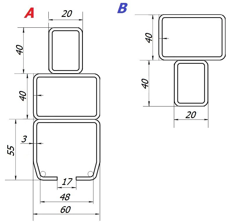 Для изготовления мы рекомендуем использовать профильную трубу сечением 60*40 для внешней рамы, 40*20 по внутреннему контуру и 20*20 для обрешетки. Предпочтительнее использовать тонкостенную трубу — это уменьшит массу ворот и поможет сэкономить на несущей системе, а в дальнейшем и на приводе.