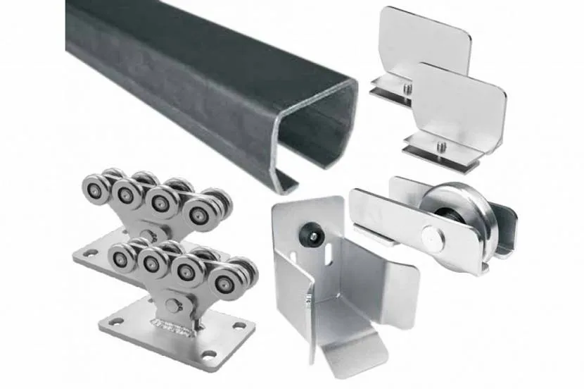 - Колесный тип установки. Смысл конструкции заключается в погружении в бетон рельса, по которому впоследствии будут катиться колесики выдвижного полотна. Здесь тоже есть существенный недостаток: с течением времени рельс загрязняется, а это, в свою очередь, способствует торможению и плохому скольжению колесиков по рейке. Именно поэтому такой вариант используется нынче не часто.