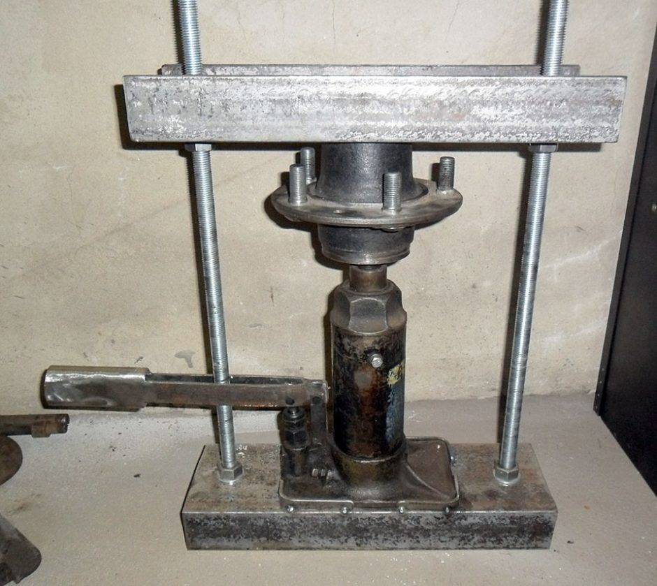 Чаще всего изготавливается самодельный пресс из гидравлического домкрата. Это объясняется конструктивными особенностями изделия и принципом его работы, который основан на законах гидравлики.