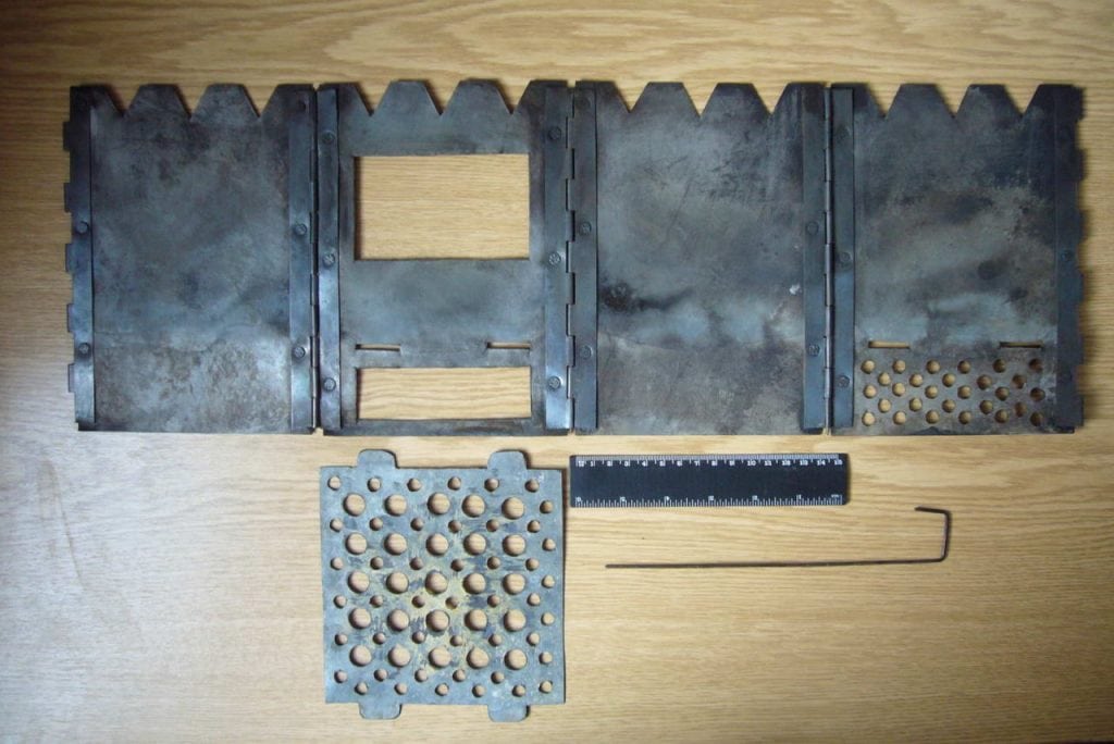 Существуют мангалы походные необычной конструкции, имеющие реальный опыт эксплуатации. Например, на нижнем фото вариант переносного в форме усеченной трапеции.