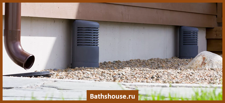 Качественно налаженная вентиляция фундамента гарантирует отсутствие плесени и грибка, предотвращает гниение постройки. Это значительно продлевает срок ее эксплуатации. Стандартный диаметр отдушин составляет 110 мм. Они проделываются по всем стенам помещения (друг напротив друга) для хорошей циркуляции воздуха. Можно превысить отметку в 110 мм, регулируя в дальнейшем количество поступающего потока заслонками и решетками. Поэтому вопрос того, как сделать вытяжку в бане, чтобы не было сырости, без помощи профессионалов решаем. Просто следует проектировать сеть еще при армировании фундамента.