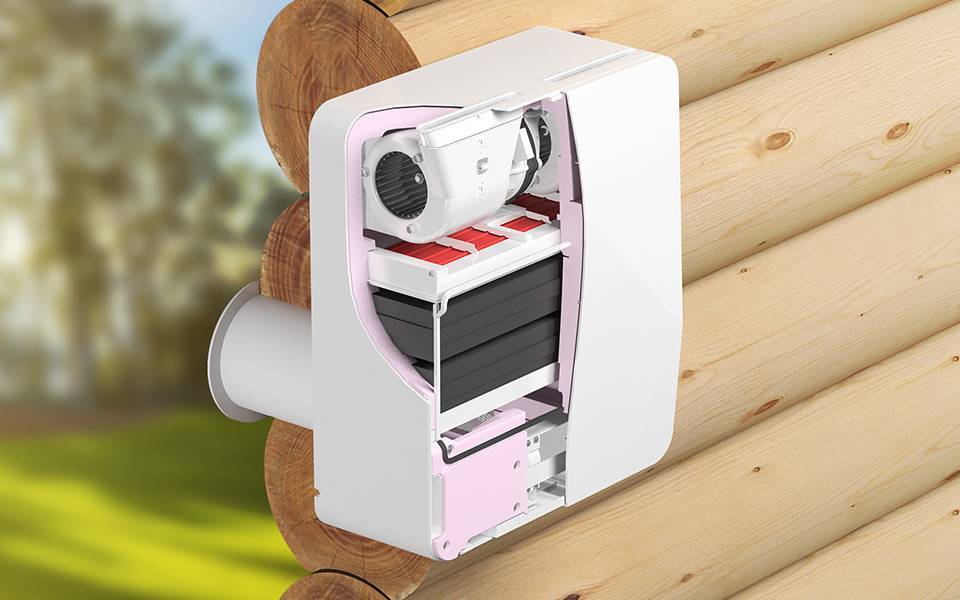 Бризеры, встраиваемые прямо в толщу стен, обеспечивают механизированный приток чистого воздуха. В холодное время года при помощи ТЭНов он еще и обогревается.