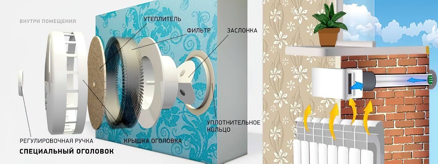 Приточные клапаны обеспечивают постоянный и равномерный приток воздуха. Некоторые приборы содержат фильтр и подогревательный элемент. Клапаны не пропускают шум с улицы.