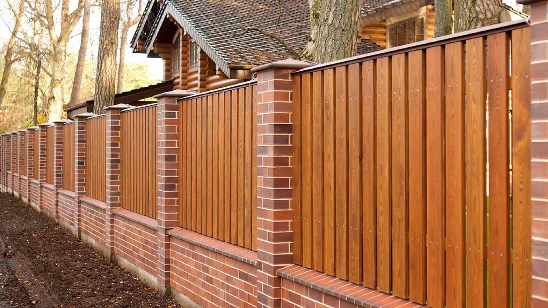 Например, при ширине планки в 10 см, расстояние между ними делать не более 6 см. Ничего видно не будет. Недостаток — большой расход древесины. Но заборы получаются красивыми. Особенно в сочетании с кирпичными или каменными столбами и фигурно сделанными верхушками.