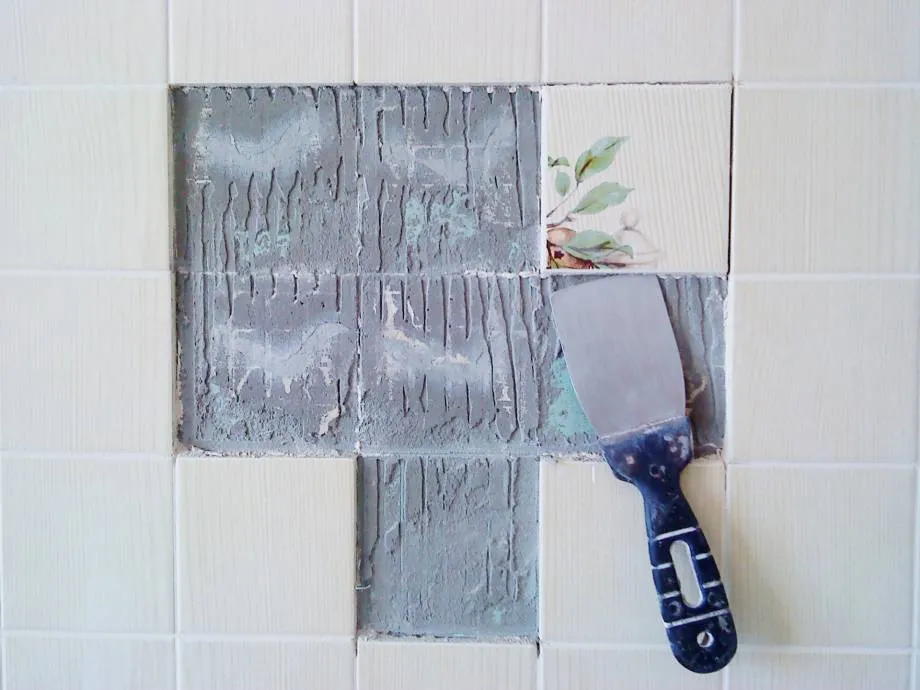 - если вы решили попытаться сохранить кафель, то действуйте согласно описанному выше классическому способу. Сначала смачиваются и зачищаются швы, а потом методично каждая плитка поддевается тонким шпателем, по которому наносятся удары молотком. Поддевать и постукивать надо со всех сторон. Как только в каком-то месте звук стал глухим, значит, плитку можно аккуратно отделять от поверхности.