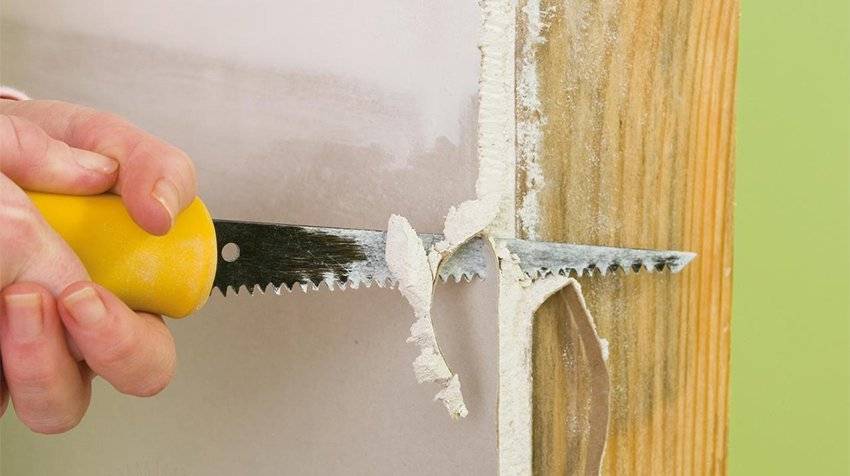 - Раскрой образцов. Делается, если их размеры по длине не совпадают с проемом. Для этого понадобится карандаш (провести линии) и ручная пила.