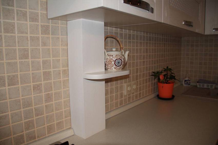 Пластиковый ящик для маскировки труб на кухне