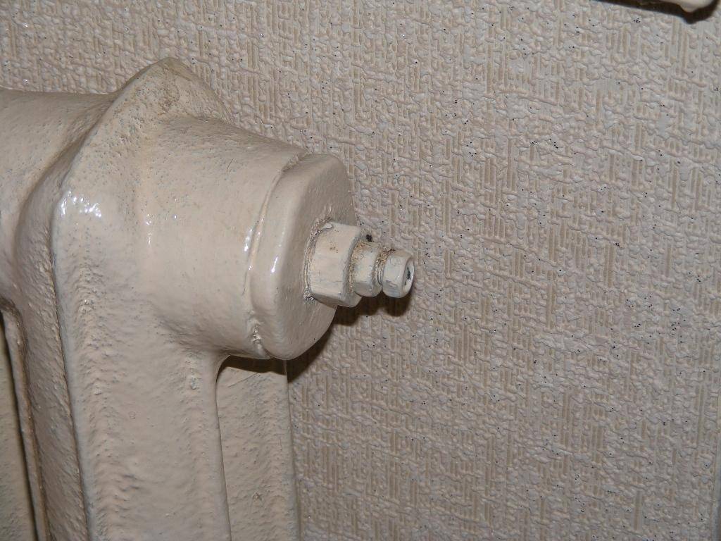 На фото — кран Маевского в концевой секции чугунной батареи.