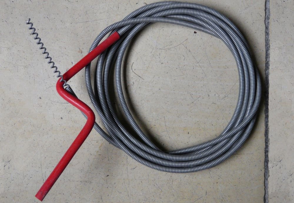 Небольшой засор устранится одним из предыдущих способов, а для серьезной проблемы нужно специальное оборудование: в данном случае трос.
