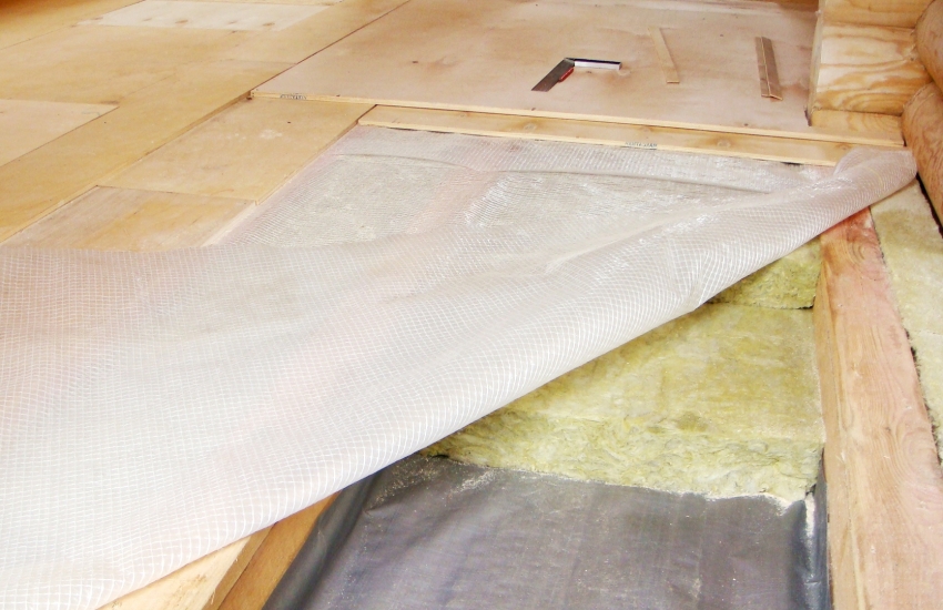 Обязательно требуется укладка пароизоляционного слоя, в особенности, если грунтовые уровни располагаются в непосредственной близости к поверхности. Пароизоляция должна накрывать всю поверхность, включая лаги. Если грунтовые воды располагаются высоко, то лучше всего подойдет пергамин или рубероид, а для низкого уровня грунтовых вод – пароизоляционная мембрана.