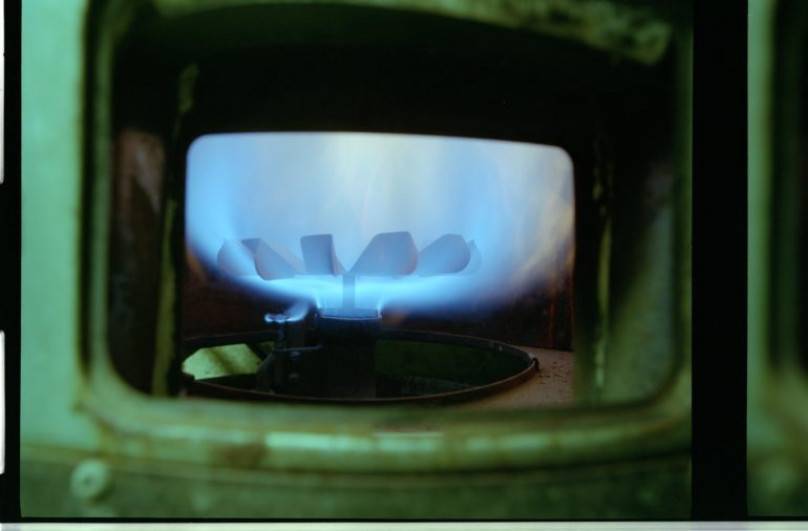 Процесс сгорания происходит в нижней части конструкции, где расположена горелка. Предусмотрены специальные рассекатели, чтобы газ отдавал тепло при движении вверх.