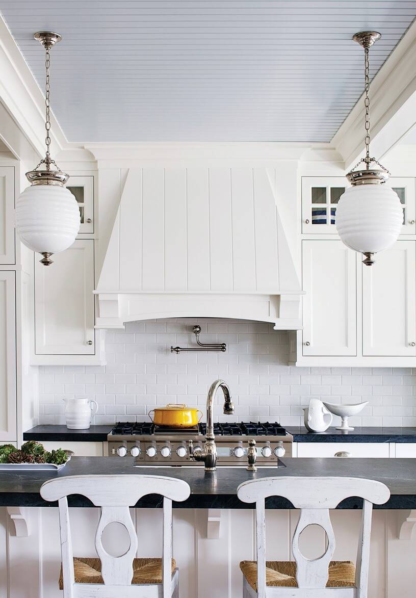 Важной характеристикой островных вытяжек является возможность их крепления не на стенах, а на потолках. Это очень подходящий тип конструкций для больших просторных кухонь с плитой, находящейся посреди помещения