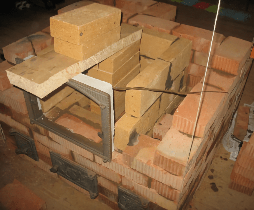Кроме этого, кладку кирпича производят на глину, а не на обычный цементно-песчаный раствор. Это важный момент, так как глина и шамотный кирпич от воздействия высоких температур спекается в монолит.