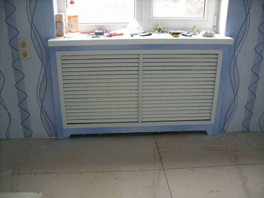 Примечание: Использование экранов для радиатора позволяет не только замаскировать батарею, но и может выполнять иные полезные функции – полка, небольшой столик, скамейка и т.д.