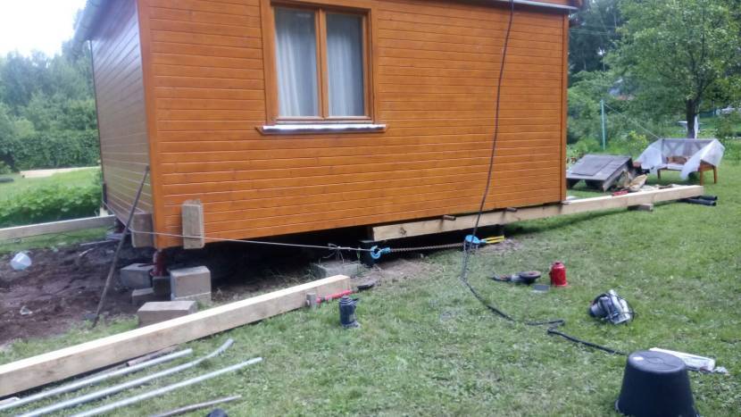 Решать, как поднять баню на домкратах, приходится и в тех редких случаях, когда необходимо её перемещение на другое место из-за конфликта с соседями или неудобного расположения.