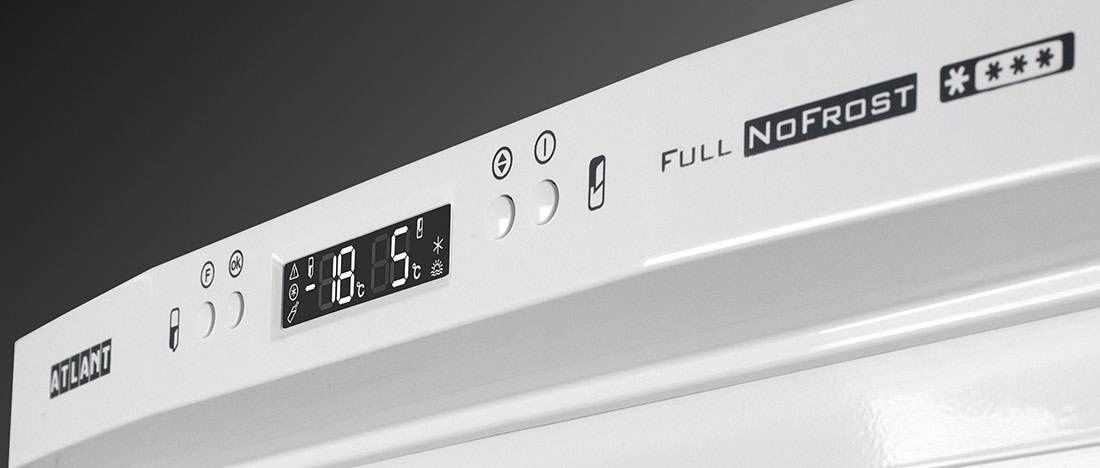 | Электронное управление | Если вам интересно, как в холодильнике «Атлант» с электронным режимом регулировать температуру, необходимо предварительно изучить инструкцию. Настройка морозилки и камеры производится по отдельности кнопкой управления, расположенной слева на панели. |
