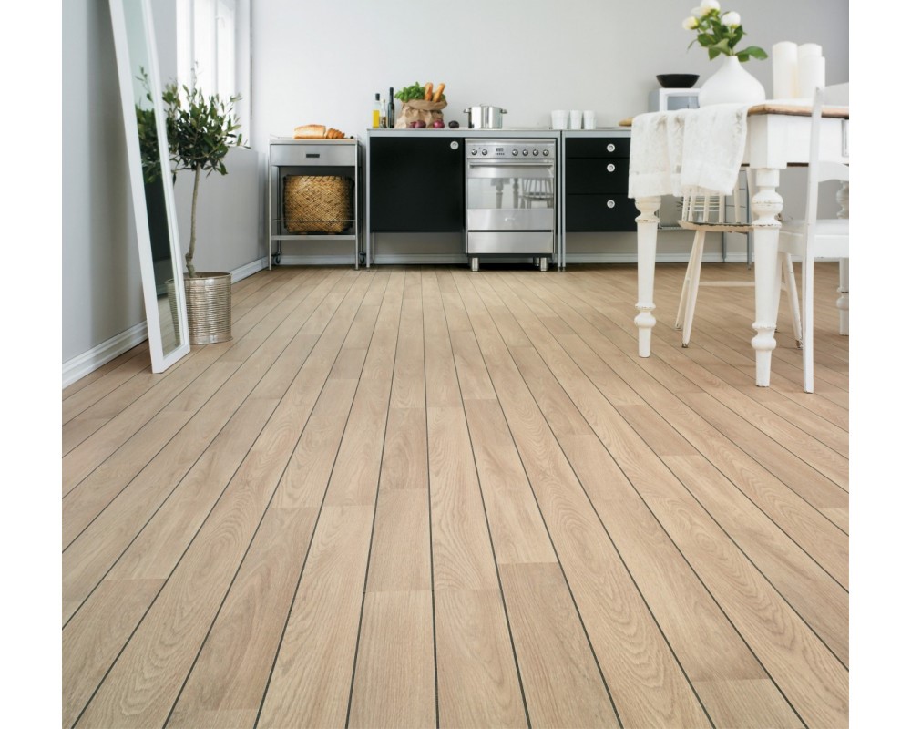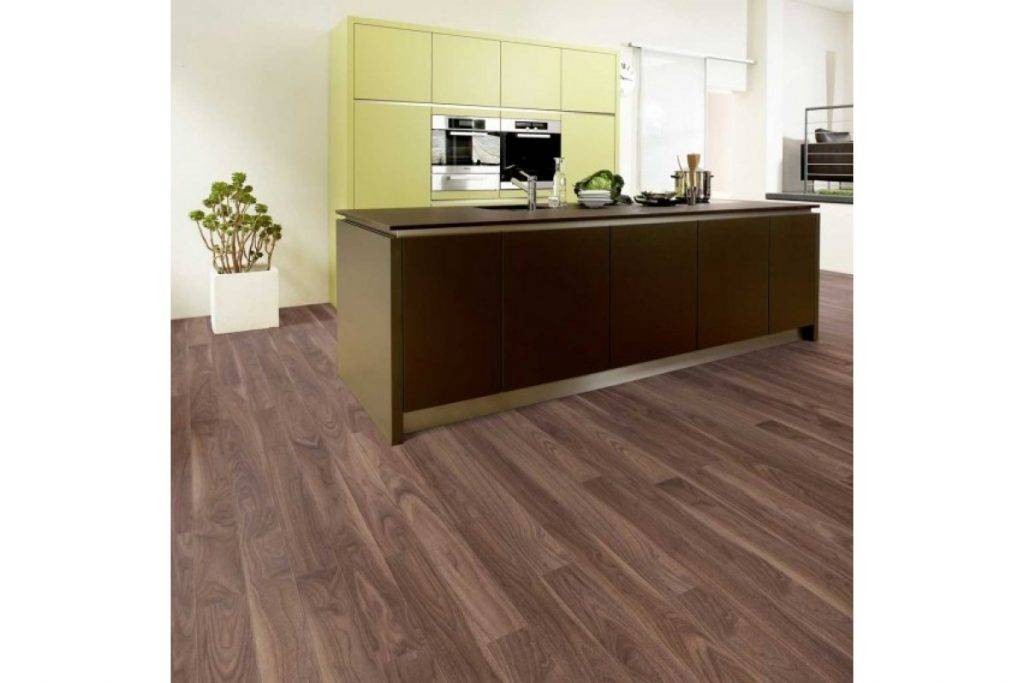 Повышенная устойчивость к влаге позволяет укладывать такой ламинат не только в обычных комнатах, но в кухне, туалете и ванной.