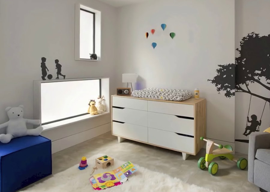 - В детской комнате. Зачастую комод используют в детской для хранения вещей, игрушек и для малышей, столешница применяется, как пеленальный столик.