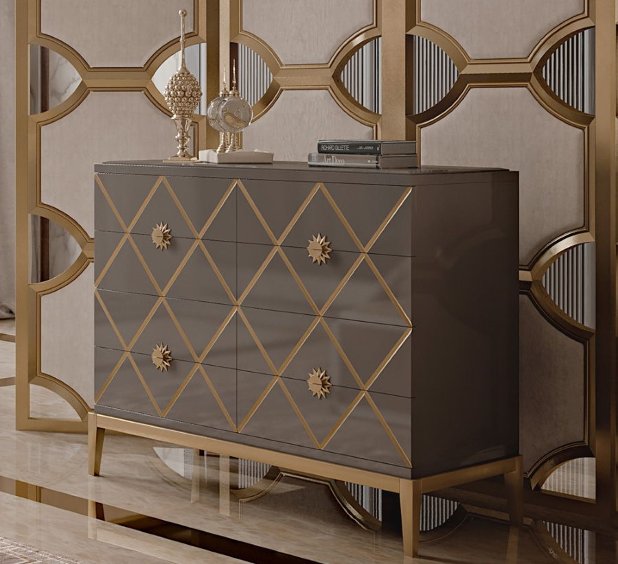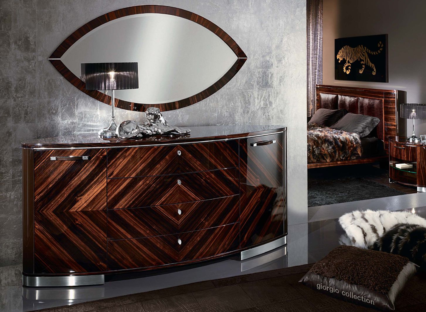 Известный стиль арт-деко требует роскоши и загадочности, поэтому для декорирования спальни в этом стиле стоит подбирать комоды, украшенные витиеватыми узорами. Красиво смотрится мебель в ярких цветовых решениях – розовом, фиолетовом, золотом или серебряном.