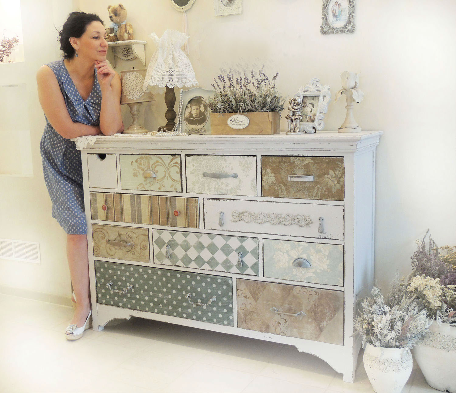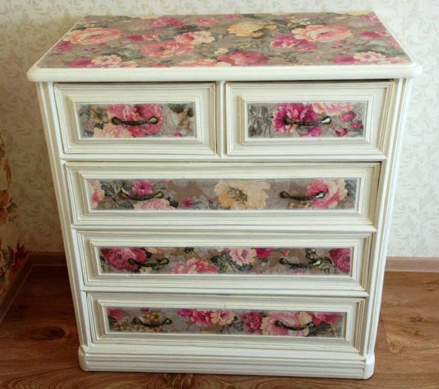 Мебель с потёртыми, окрашенными фасадами идеально впишется в стиль кантри или прованс. Техника декупаж идеально подойдёт для создания красивого и необычного комода.