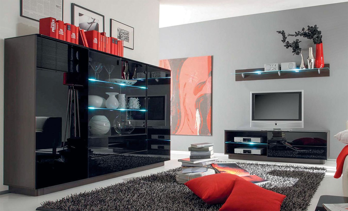 - В гостиной. Этот такой же предмет интерьера, как шкаф. Он может стать местом для хранения изящной коллекции фигурок, как подставка под телевизор или музыкальный центр. Если мебель установлена островным способом, комоды лучше установить сбоку от диванов, это позволить закрыть от посторонних глаз заднюю сторону мебели. Различные виды комодов для гостиной можно подобрать под различные виды интерьера.