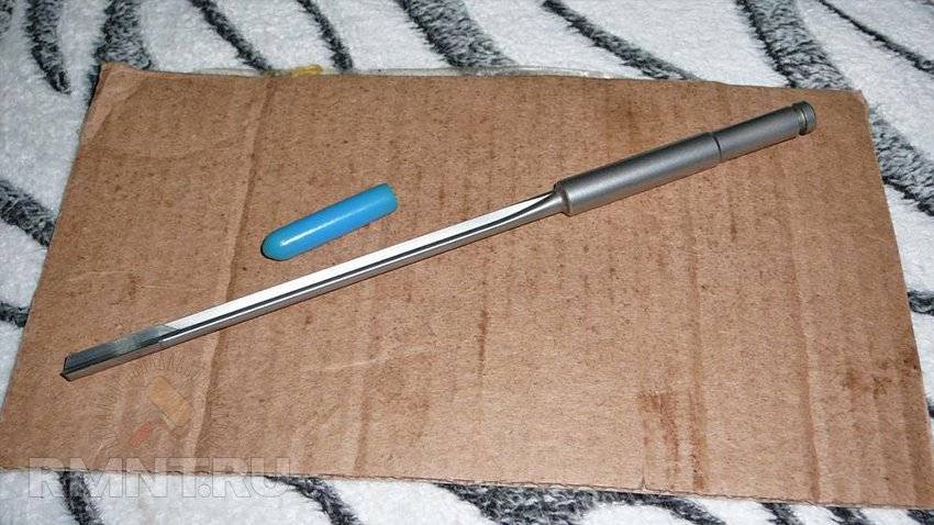 Такое сверло сточено наполовину для эффективного отвода стружки. Конструкция его не спиральная, а прямая. Также его отличает хвостовик Морзе, подходящий только для крепления в патроне станка. Такими орудиями высверливают ружейные дула.