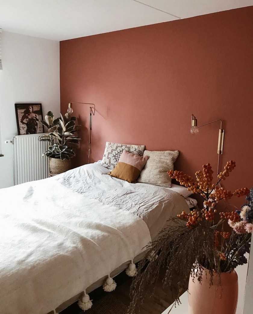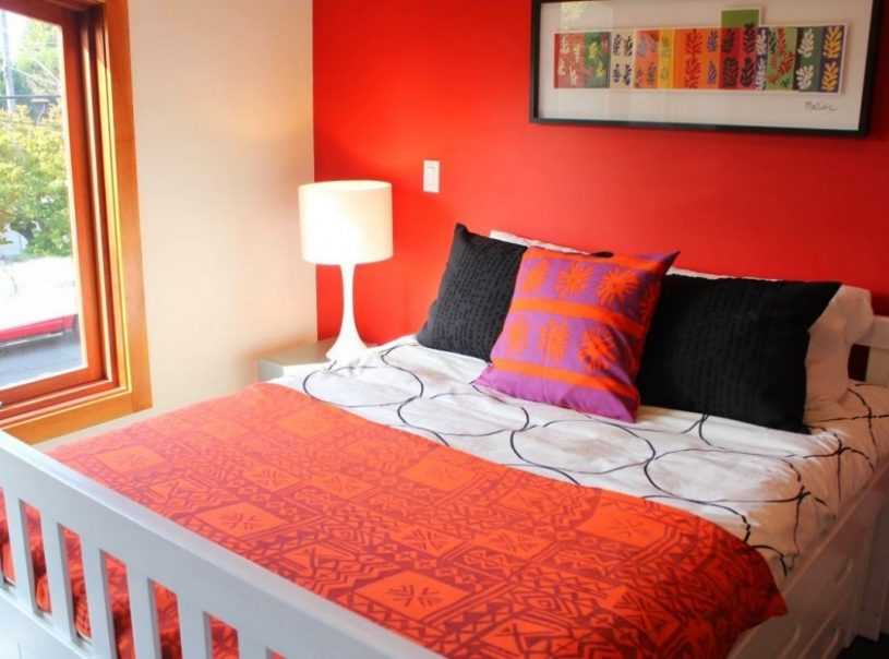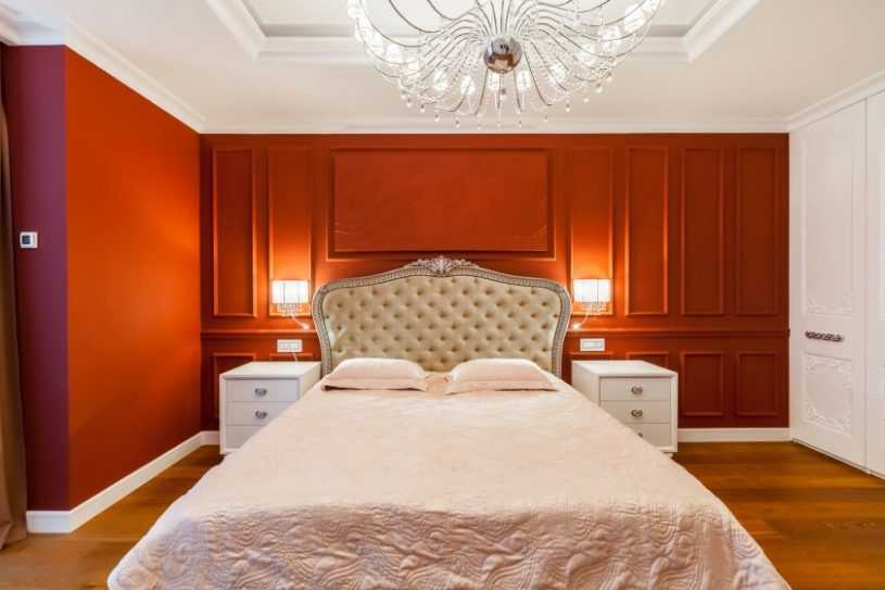 Если же вы хотите выполнить спальню, например, в красном цвете, то лучше использовать приглушенный оттенок.
