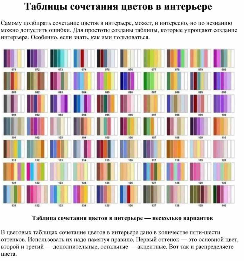 Таблица сочетания оттенков
