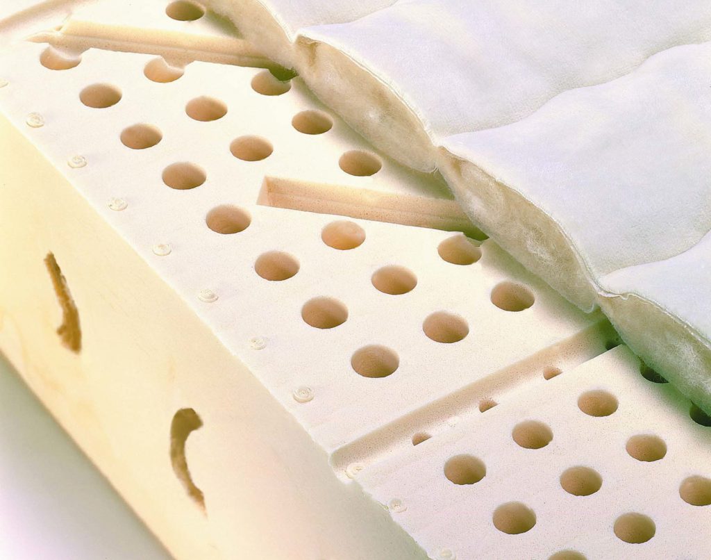 Латекс производится из гевеи или сока каучукового дерева. Вспенивая материал в его структуре образуются сотни тысяч ячеек, которые отвечают за воздухообмен и лучшую гигроскопичность. Еще одним преимуществом латекса является долговечность.