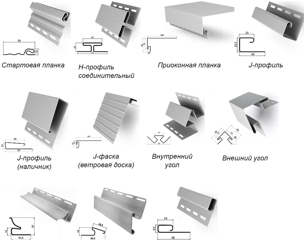 Небольшая разница, способная заставить задуматься, какой тип сайдинга выбрать — уже присутствует. Продолжить список стоит отличиями в специальных комплектующих. Для винила предлагается четко стандартизированный набор соединительных, финишных, стартовых, угловых и других элементов. Стоят они недешево, детали не взаимозаменяемы.
