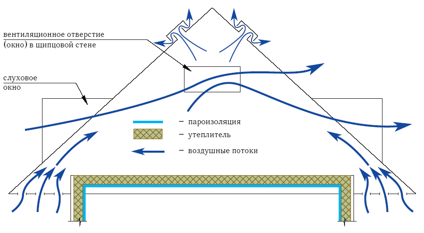 Поскольку парциальное давление водяного пара внутри помещения существенно выше аналогичного давления водяных паров в наружном воздухе, через поры, имеющиеся в материалах стен и потолка, происходит его диффузия. Охлаждаясь и конденсируясь, пар превращается в воду, в результате чего происходит намокание утеплителя. В качестве утеплителя предполагается использование различных «минеральных ват», т.е. материалов, имеющих волокнистое строение, способствующее удержанию влаги.
