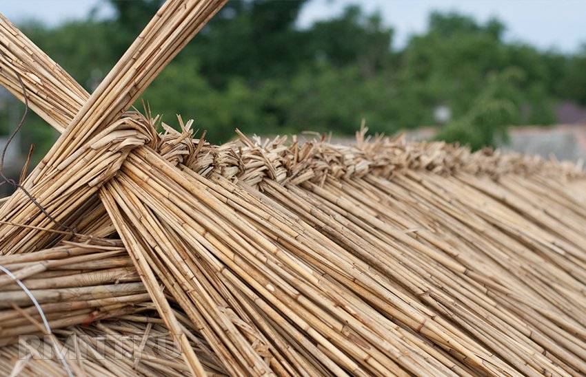 Как и любое кровельное покрытие, камыш укладывается снизу вверх рядами – поочередно ложится сначала первый слой покрытия, а потом второй и, если нужно, то и третий.