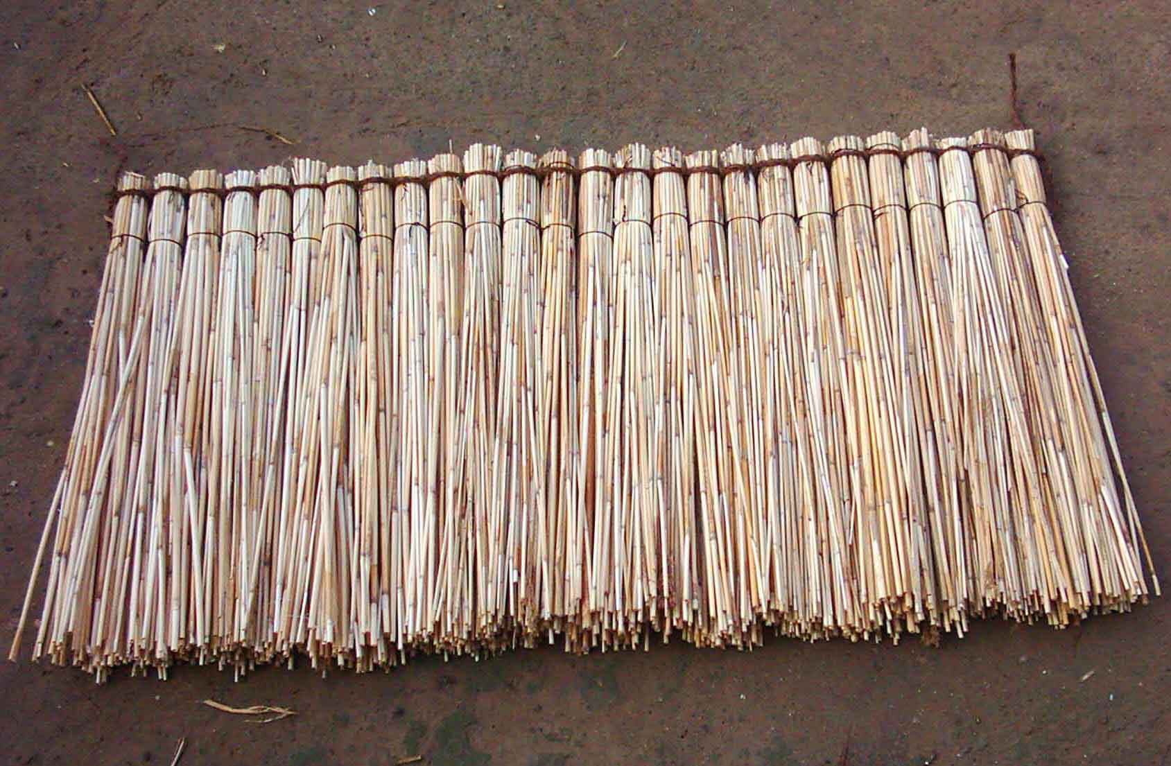 Первым делом, чтобы укрыть крышу камышом нужно заготовить снопы – стебли при этом должны быть длиной от 1,6 до 2,2 м, в пучках располагаться равномерно.